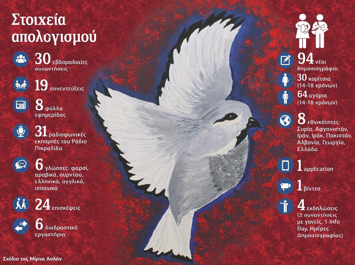 می خواهیم صمیمانە از شما تشکر کنیم کە بستە های روزنامە و پکیج های اطلاع رسانی مربوط بە زندگی پناهندگان را با مهر و محبت برایمان ارسال کردید. با این کار کمک شایانی بە امر اطلاع رسانی و آموزش کودکان بدون همراه خوابگاه فریکسوس کە تحت نظر سازمان آرسیس در شهر الکساندروپولی ادارە می شود، کردید. همچنین امکانی ایجاد کردە اید کە کودکان بە یک سری از حقوق اساسی خود دسترسی داشتە باشند و همزمان از فعالیت مراکز اجتماعی پروژە ی آرسیس حمایت کردە اید. ما با هم می توانیم قدمی هر چند کوچک برای رفع نیازمندی های روزانه ی آنها برداریم.