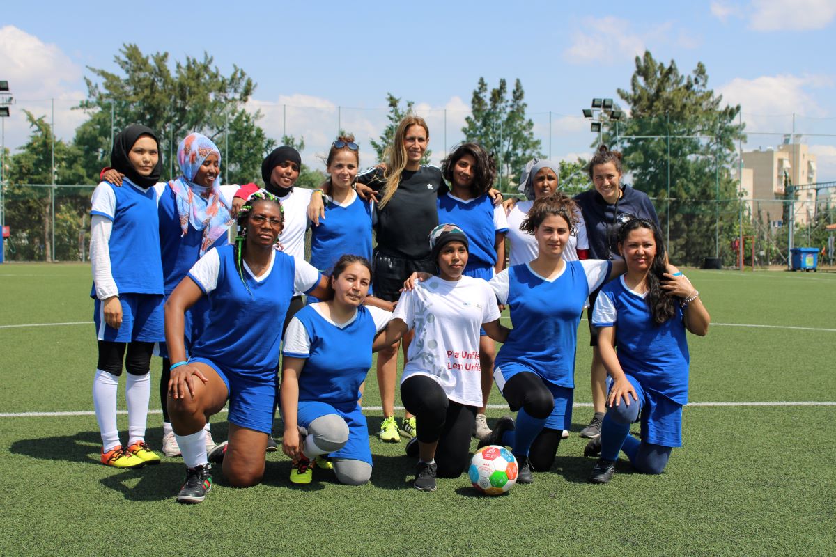 خانم Katerina Salta کسی که مدیریت این تیم را به عهده دارد و در واقع سازنده این تیم است به استقبالمان آمد .برنامه او ساختن یک تیم فوتبال از بانوان مهاجر بود و این واقعا ایده ی شگفت انگیزی بود ،در حدی که توانست در مدت زمان کوتاهی که از تشکیل این تیم می‌گذرد توجهات زیادی را نه تنها در یونان بلکه در سایر کشورهای جهان و حتی رسانه های سرشناسی همچون BBC را به خود جلب کند .اما آنچه که توجه مرا جلب کرد بعد از ملاقات با این تیم ،حضور بانوانی از کشور افغانستان بود .اولین چیزی  که من به یاد آوردم با دیدن آنها در زمین فوتبال ،اخباری بود که طی چند ماه گذشته درباره رئیس فدراسیون فوتبال افغانستان پخش شده بود .اخباری که نشان دهنده نا امنی ورزش فوتبال برای بانوان افغان بود .شرح اخبار اینگونه بود ،در دفتر رییس فدراسیون فوتبال افغانستان زنان مورد آزار و اذیت جنسی قرار میگیرند .ولی حالا در این کشور بیگانه من دخترانی از افغانستان را میبینم که چگونه در کمال امنیت و آزادی  مشغول تمرینات هستند. ناگفته نماند ریئس‌ فدراسیون فوتبال افغانستان بعد از برملا شدن این قضیه برای همیشه از طرف فیفا از سمت خود برکنار شد .