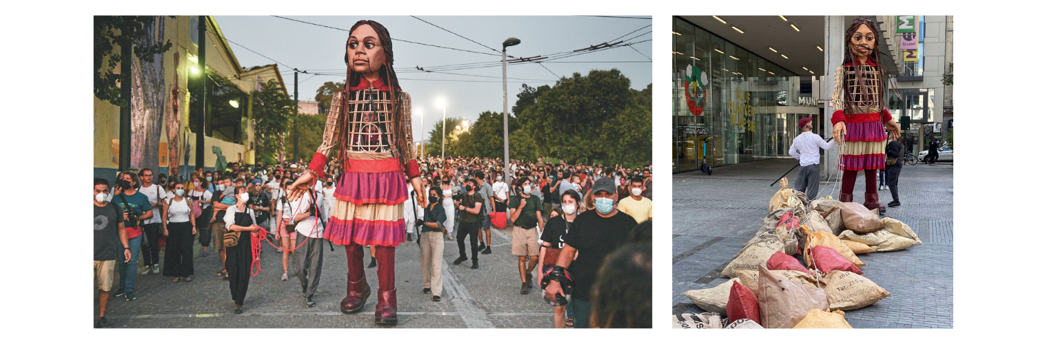 Little Amal, the 3,5 meter puppet doll, is a 9-year-old refugee from Syria that we met through THE WALK project, decided to collect letters of other children describing what change they would like to see in the world for refugee children. Amal delivers thousands of letters to the European Parliament and inside her bag there is also our group letter. We hope that all children’s voices will be finally heard!