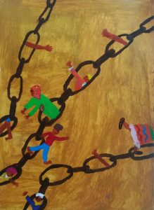 Πριν λίγο καιρό, έλαβα συμμετοχή στο φεστιβάλ “Raise Your Voice”. Σε αυτό το φεστιβάλ άνθρωποι από την Ελλάδα, όλοι μαζί, υψώσαμε τις φωνές μας ενάντια στην εμπορία ανθρώπων. Οι άνθρωποι μπορεί να βλάψουν και να εκμεταλλευτούν ευάλωτα άτομα. Πρέπει να μιλάμε ο ένας στον άλλο και να βοηθάμε τα θύματα. Πολλές φορές τα θύματα φοβούνται να μιλήσουν. Πρέπει να προσπαθήσουμε να καταλάβουμε τις λέξεις μέσα από τα μάτια τους και να ακούσουμε την καρδιά τους. Μόνο με αυτόν τον τρόπο μπορούμε να τα βοηθήσουμε. Με ενσυναίσθηση μπορούμε να προσπαθήσουμε να καταλάβουμε τη θέση τους. Όλοι μαζί μπορούμε να προσπαθήσουμε να σταματήσουμε την εμπορία ανθρώπων και να φτιάξουμε έναν καλύτερο κόσμο. Για τη συμμετοχή μου αποφάσισα να βγάλω αυτή τη φωτογραφία. Σε αυτή μπορείτε να δείτε δύο ανθρώπους, να αναγνωρίσετε ποιο είναι το θύμα. Και αν συναντήσουμε ένα θύμα πρέπει να του συμπαρασταθούμε…